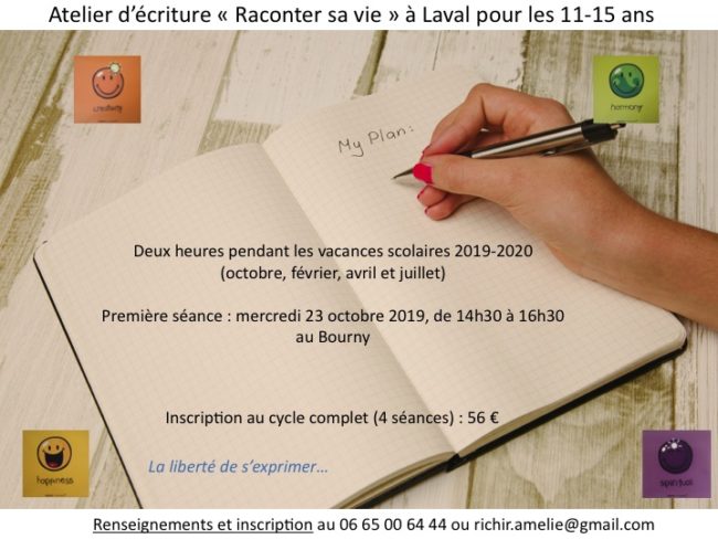 Quel est le contenu de l’atelier ? Je vous propose d’écrire une ou plusieurs nouvelles après avoir fait connaissance avec ce genre d’écrit de moins de 40 000 mots. J’aimerais aussi vous permettre de participer à des concours de nouvelles si le coeur vous en dit. Nous pourrons échanger sur ce vaste sujet. Quand ?…
